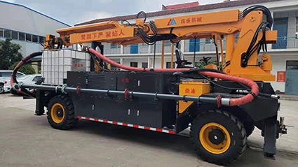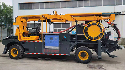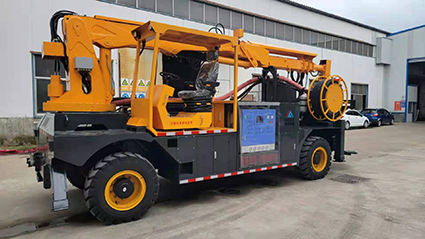 混凝土濕噴臺車包括液壓噴射機械手、噴射機(泵)、外加劑及其添加設備和電纜卷盤、空壓機等,都安裝在同一機械底盤上,是一臺集混凝土泵送、外加劑添加、混凝土噴射等多項作業(yè)于一體的組合設備。混凝土濕噴臺車的各組成系統(tǒng)在整體設計上統(tǒng)一考慮了其布局的合理性,做到了易于維修,并具有易于清洗的特點。