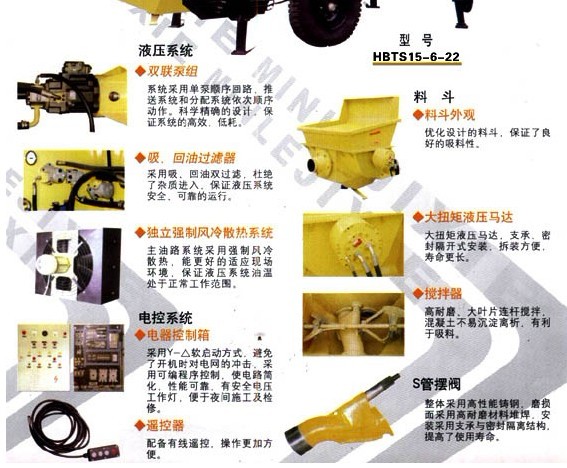 電機 主油泵(現(xiàn)在一般用韓國川崎的進口主油泵) 電磁閥(國內(nèi)用華德的多) 料缸 主油缸(國內(nèi)品牌好的是協(xié)力油缸) 潤滑泵 (6路潤滑泵)風冷(冷卻液壓油的,也有廠家用水冷,水冷工地需要接水,就是這個麻煩一些)電控柜 (PLC歐姆龍的比較好點)。