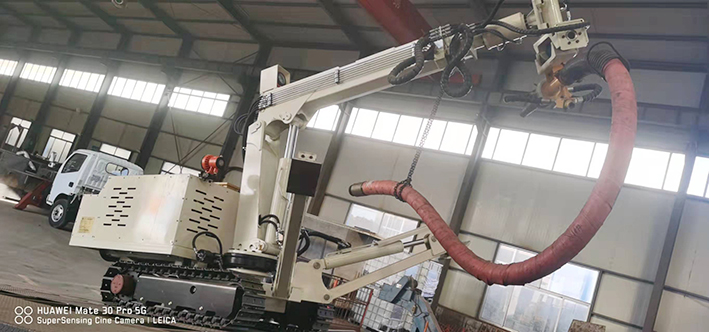CPF-6OLY型礦用混凝土輔助噴射車(以下簡稱噴漿機(jī)械手)主要用于煤礦井下煤巷、半煤巷、全巖石掘進(jìn)巷道與混凝土噴射機(jī)配套使用,代替人工噴漿作業(yè),滿足噴漿工藝要求,整機(jī)小巧、靈活、耐用、適應(yīng)能力強(qiáng),可用于大型噴漿機(jī)組無法進(jìn)入的巷道,實現(xiàn)噴漿無線操作、機(jī)械化作業(yè),減輕人工噴射勞動強(qiáng)度大的問題。整機(jī)完全采用無線遙控操作、液壓控制,工作性能安全可靠。下車液壓系統(tǒng)負(fù)責(zé)行走、上車液壓系統(tǒng)負(fù)責(zé)噴射,上下車動作手動切換,防止誤操作。整機(jī)具有結(jié)構(gòu)穩(wěn)定可靠,動作平穩(wěn),噴射范圍大,自由度多,遙控操作靈活,噴射平整度好,回彈少,噴射效率高、施工質(zhì)量好,可實現(xiàn)遠(yuǎn)程控制,操作人員可位于在可視情況好、粉塵濃度少,較為安全的位置操作,保證使用人員安全。